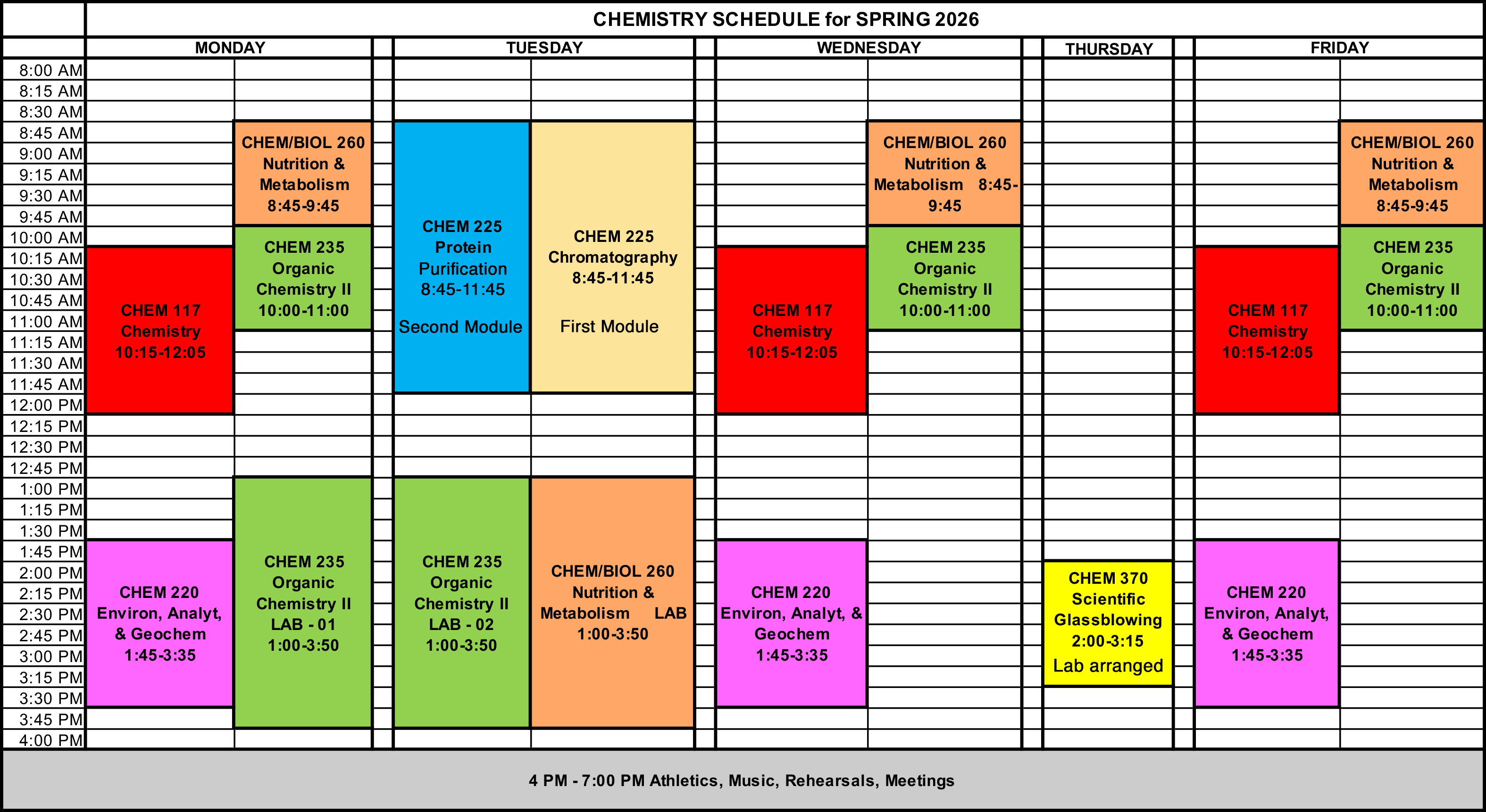 Health Professions Planning for Graduate Work in Chemistry (ACS) More information & links Chemistry course schedule :